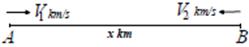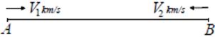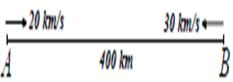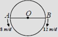 AB çapının uç noktalarından şekildeki gibi saatteki hızları 8 ve 12 m/d olan iki bisikletli aynı anda birbirlerine doğru harekete başlıyorlar.