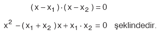 Kökleri x1 ve x2 olan II. dereceden denklem;