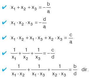 Kökleri x1, x2 ve x3 olan III. dereceden denklemin kökleri: