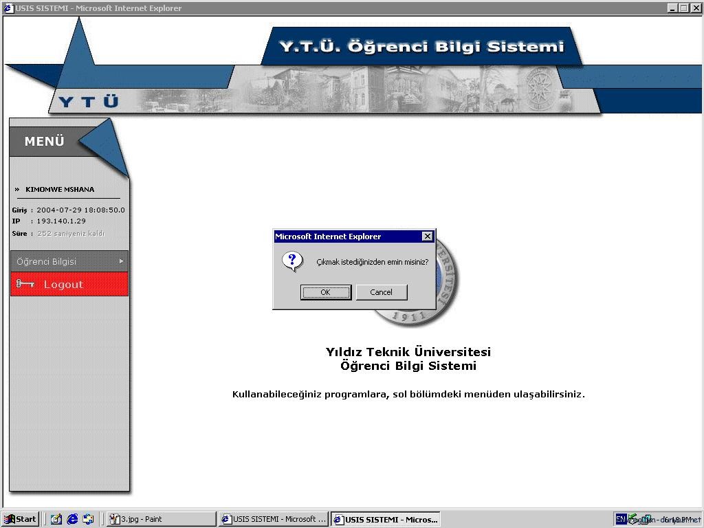 d) Y.T.Ü Öğrenci Bilgi Sisteminden Çıkış