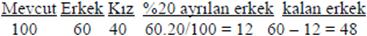 Örnek: %20’si kız olan bir sınıfa 10 kız öğrenci daha gelirse, sınıftaki erkek öğrenci oranı %64 oluyor. Erkek öğrenci sayısı kaçtır?