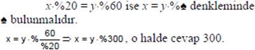 Çözüm: x.%y = 5, x.y.%x = 20 taraf tarafa bölünürse x = 4 bulunur.